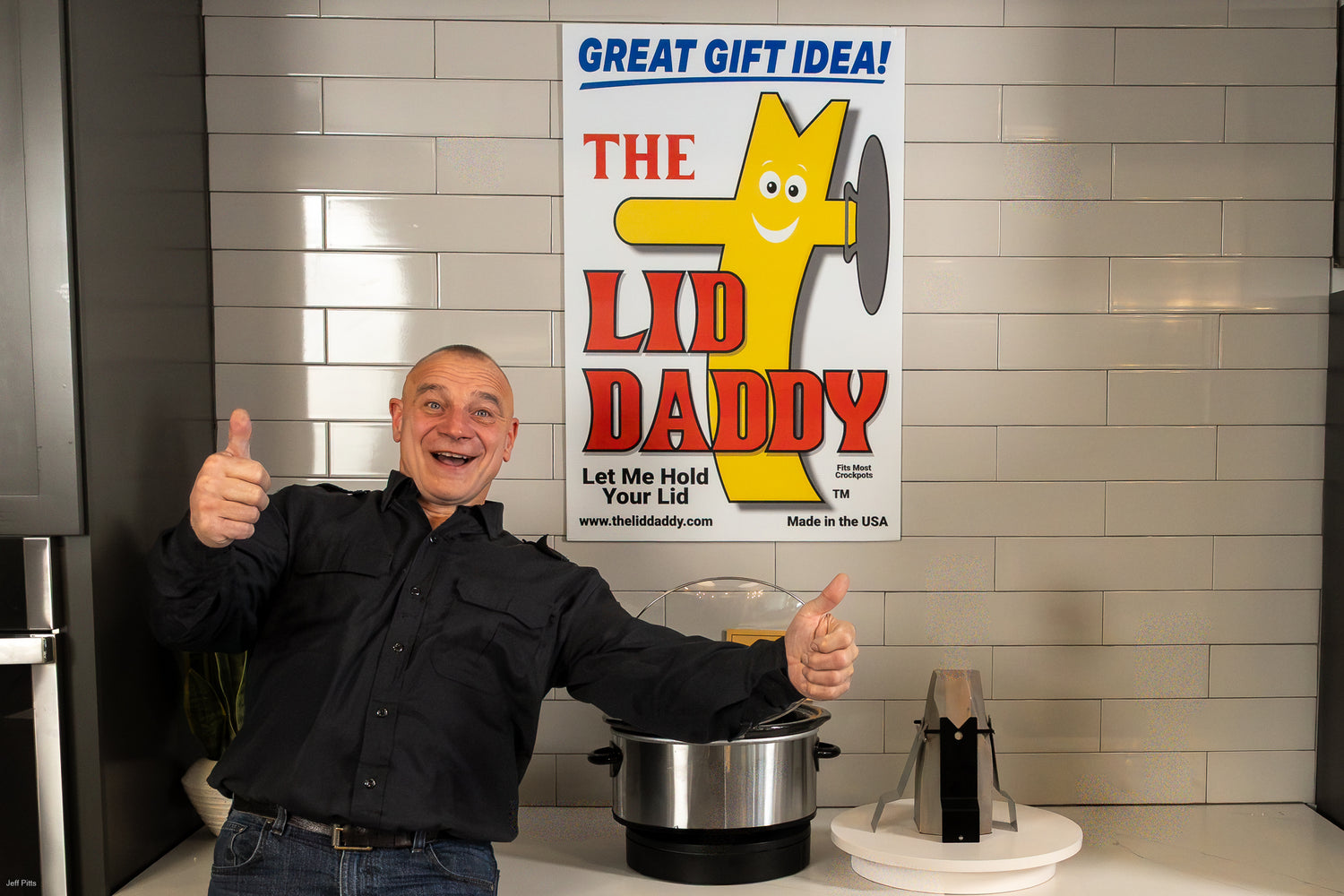 On the counter? In the sink? Balancing on the edge of a pot like a circus act? Lid Daddy gives your lid a real home - so your kitchen stays clean.