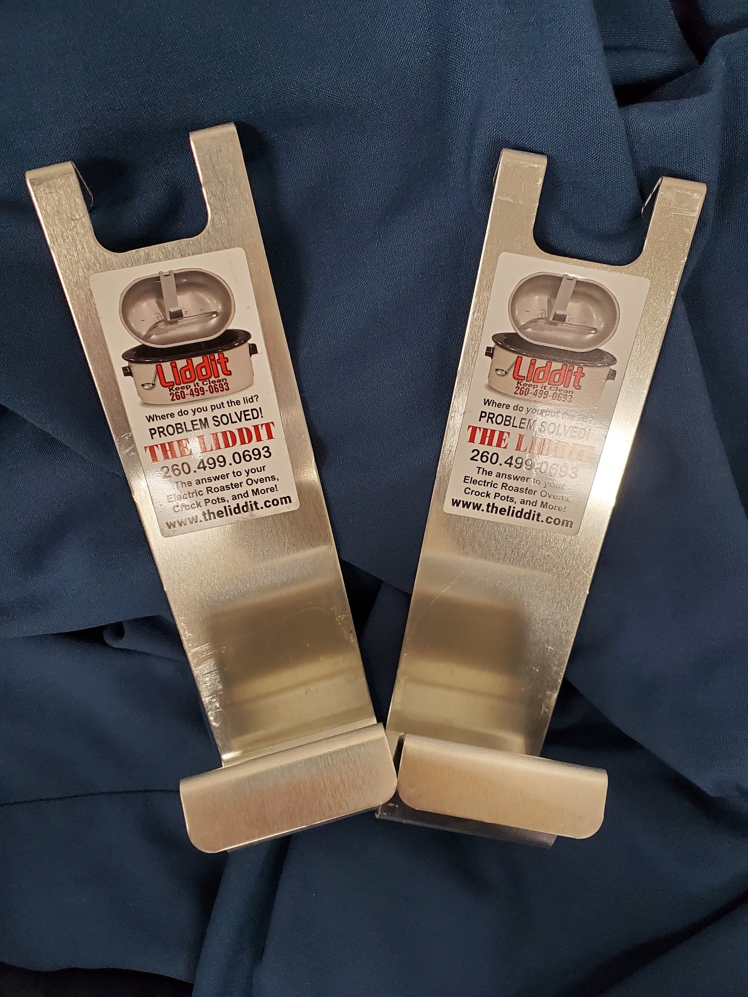 Includes two high grade aluminum Liddits designed for your favorite roaster oven brand. One for your lid, and one for your spoon. Problem solved.